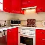 The apartment provides guests with a terrace, a living room, and a fully equipped kitchen, as well as such modern comforts as climate control.